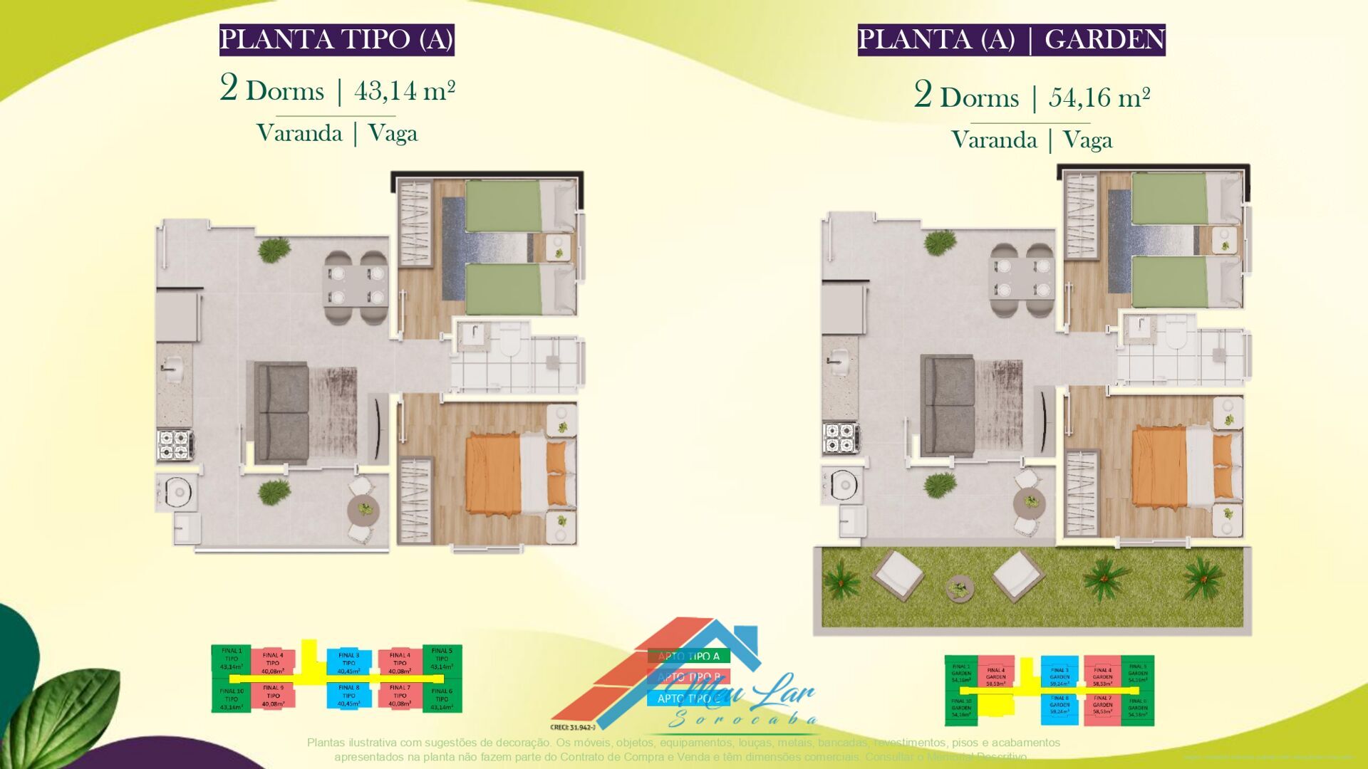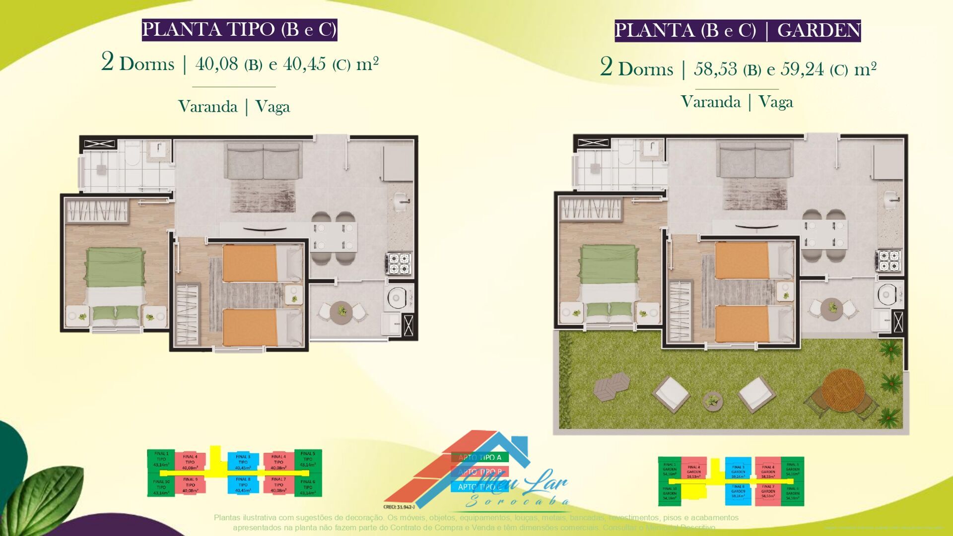 Unidades com metragens entre 40,08 m² á 59,24 m². Consulte as maravilhosas unidades com quintal privativo.