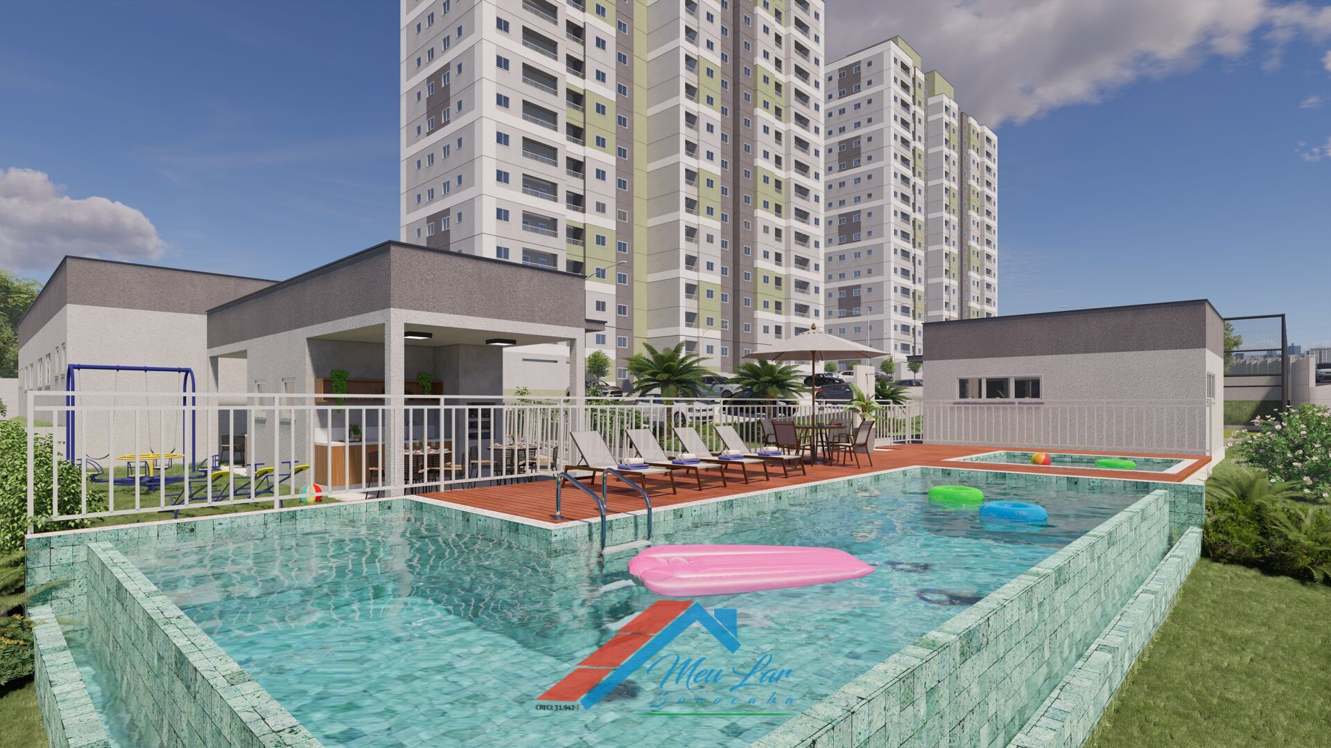 Condomínio com ampla infraestrutura para você e sua familia, piscina, salão de festas, fitness, redário, pet place, quadra poliesportiva, playground, etc!